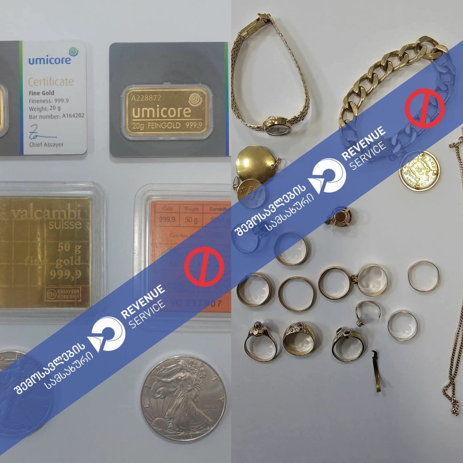 საბაჟო გამშვები პუნქტი – ,,ქუთაისის აეროპორტში“ დიდი ოდენობით არადეკლარირებული ოქროსა და ვერცხლის ნაკეთობების, მათ შორის ოქროს ზოდებისა და ვერცხლის მონეტების შემოტანის 5 ფაქტი აღიკვეთა.
